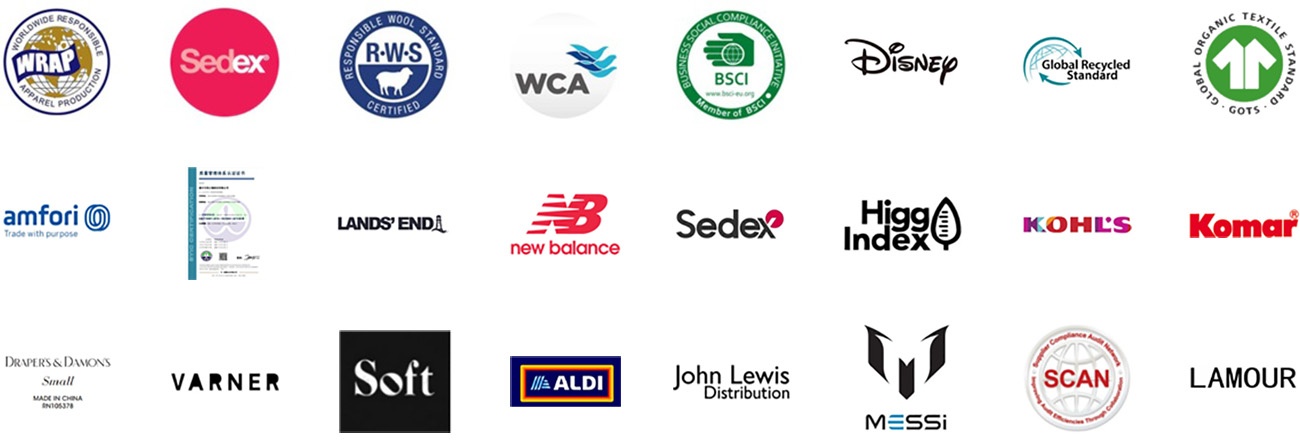 公司具有良好資質(zhì),已取得歐盟認(rèn)證:BSCI、SEDEX、WRAP、GRS和ISO9001認(rèn)證,公司還是WOOLMARK成員單位。